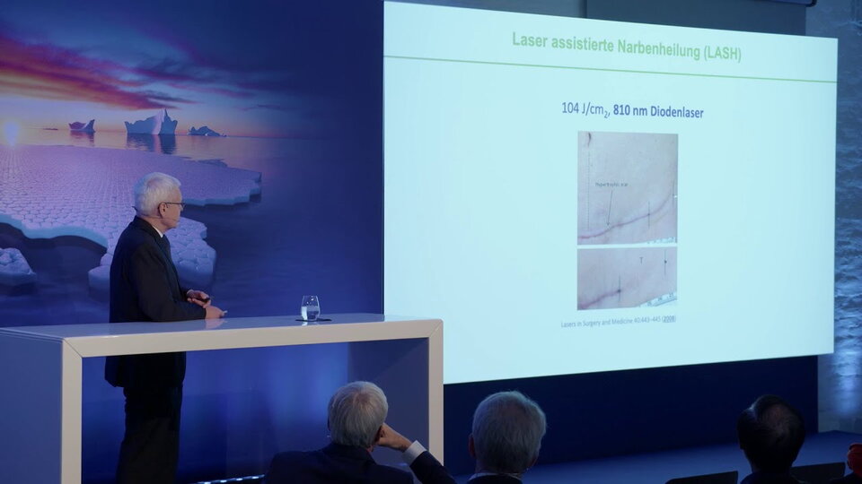 Unter dem Konzept der „Laser-assisted scar healing“ (LASH) diskutiert Baron die frühe Laserbehandlung von Operationsnarben. In klinischen Studien wurden Hautareale direkt nach der Operation getestet: Eine Hälfte der Narbe wurde unmittelbar mit einem geeigneten Laser (z. B. Dioden- oder Er:Glass-Laser im Bereich um 1.045 nm) behandelt, die andere Hälfte diente als Kontrolle. Die gelaserten Areale zeigten weniger Rötung, geringere Hypertrophie und insgesamt bessere Narbenqualität.